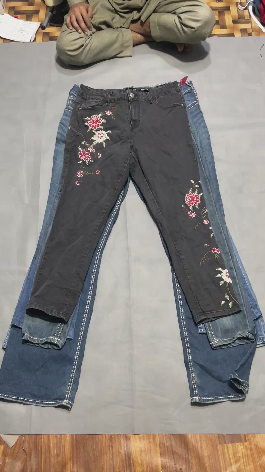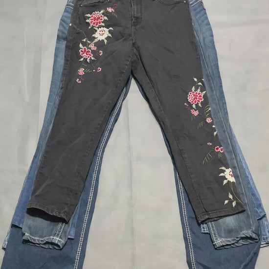 A curated 5-piece bundle of branded women’s embellished jeans, featuring trendy detailed designs ideal for boutiques, online
