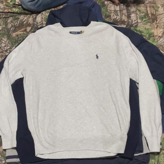 A curated 11-piece unisex polo sweater & sweatshirt bundle, featuring branded casualwear ideal for resellers, thrift stores, and online vintage marketplaces.